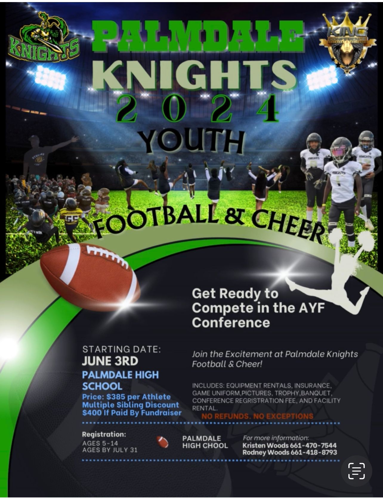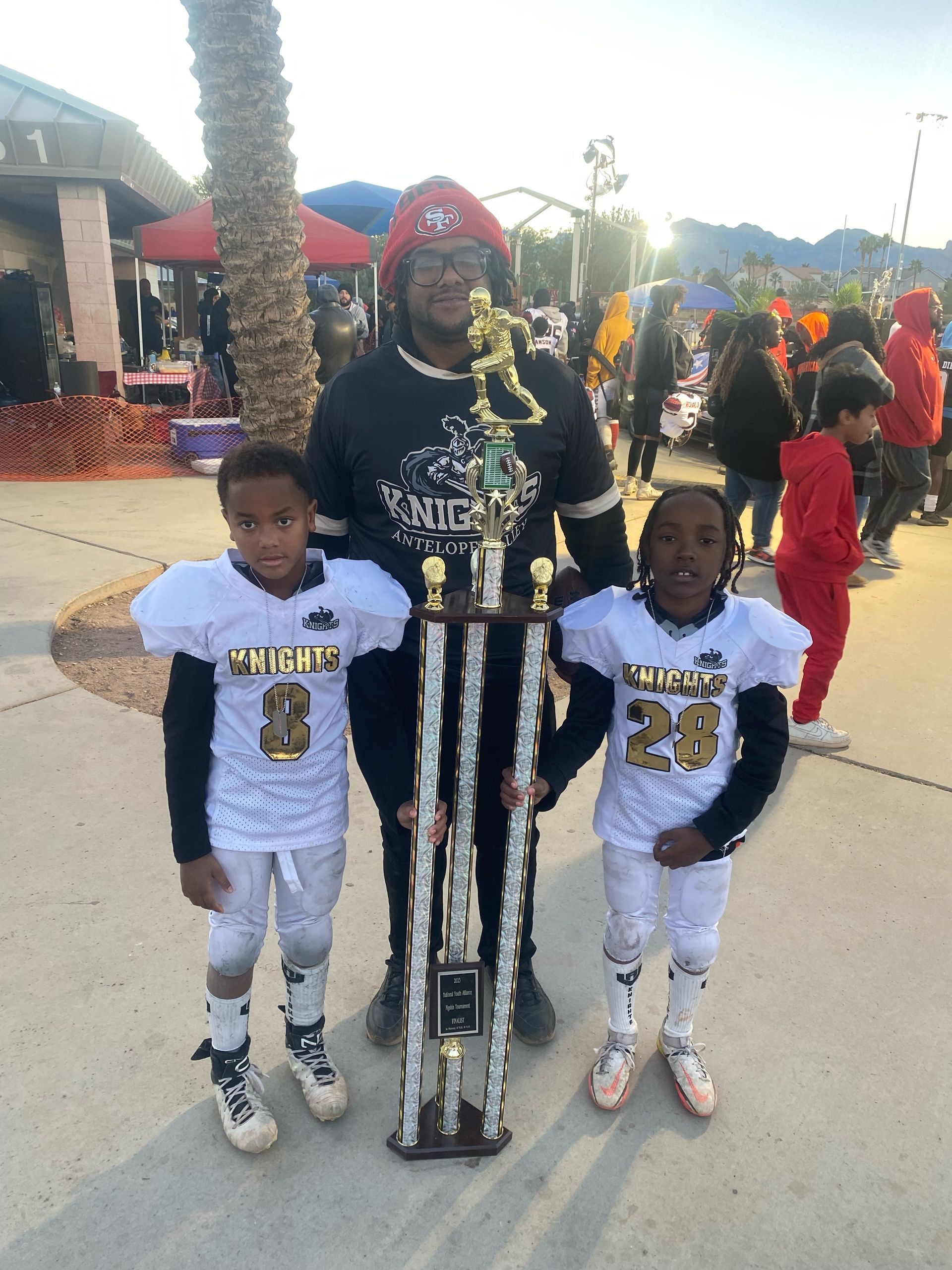 Palmdale Knights offers a free clinic at Pelona Vista Park every Sunday from 3:30pm to 5:30pm. Our goal is to get the youth active and healthy while engaging with their peers to help form a strong camaraderie within the organization. Here is where they will learn the basic fundamentals such as proper stretching, strength, conditioning, proper technique, and agility drills. We invite all kids ages 5 - 14 to come out and get some work done!